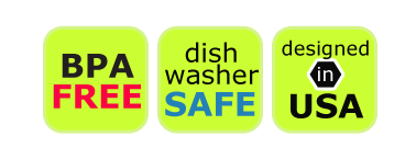 BPA Free · Top-rack Dishwasher Safe · Freezer Safe · FDA-approved material · Designed in USA