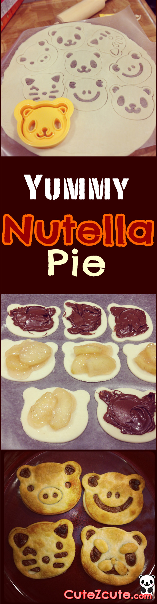 Basically I use Pillsbury pie crust from the refrigerated section (found at most grocery stores) and follow the instructions on the package. My little tip: I don't like thick pie. I like more Nutella on my pie (^_^), so I roll the pie dough thinner. Spread Nutella on the dough and bake for about 8 minutes. Cooking time may vary depending on dough thickness. That's it — very simple and yummieee!